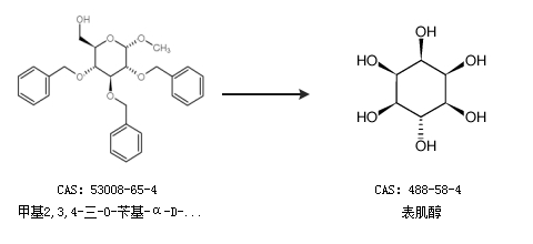 1.通过甲基2,3,4-三-O-苄基-α-D-吡喃葡萄糖苷合成表肌醇