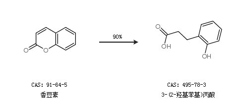 1.通过香豆素合成3-(2-羟基苯基)丙酸,收率约90%;