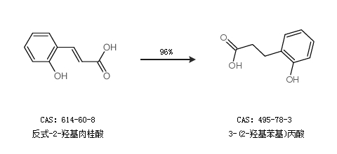 2.通过反式-2-羟基肉桂酸合成3-(2-羟基苯基)丙酸,收率约96%;
