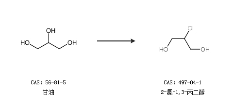 1.通过甘油合成2-氯-1,3-丙二醇,收率约4%;