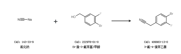 2.通过氰化钠和(4-溴-3-氟苯基)甲醇合成3-氟-4-溴苯乙腈