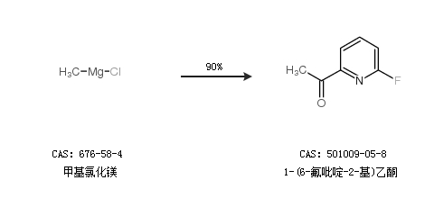 1.通过甲基氯化镁合成1-(6-氟吡啶-2-基)乙酮,收率约90%;