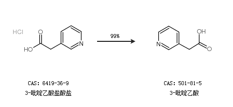 1.通过3-吡啶乙酸盐酸盐合成3-吡啶乙酸,收率约99%;