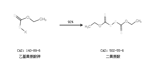 2.通过乙基黄原酸钾合成二黄原酸,收率约92%;