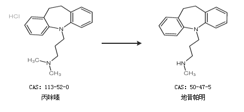 中文别名 3-(10,11-二氢-5H-二苯并[B,F]氮杂卓-5-基)-N-甲基丙-1-胺;去甲丙咪嗪;