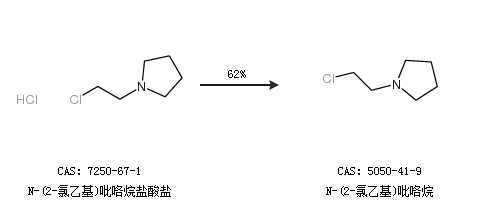 2.通过N-(2-氯乙基)吡咯烷盐酸盐合成N-(2-氯乙基)吡咯烷,收率约62%;
