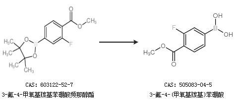 1.通过3-氟-4-甲氧基羰基苯硼酸频那醇酯合成3-氟-4-(甲氧基羰基)苯硼酸