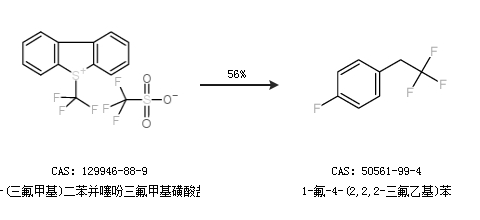 1.通过S-(三氟甲基)二苯并噻吩三氟甲基磺酸盐合成1-氟-4-(2,2,2-三氟乙基)苯,收率约56%;