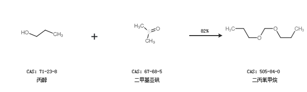 2.通过丙醇和二甲基亚砜合成二丙氧甲烷,收率约82%;