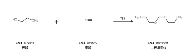 1.通过丙醇和甲醛合成二丙氧甲烷,收率约75%;