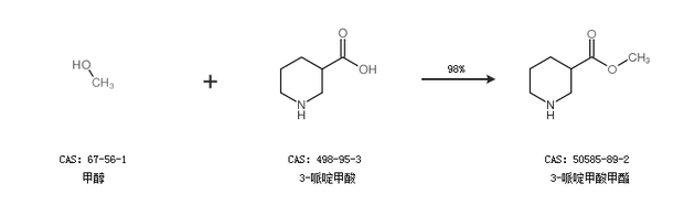 2.通过甲醇和3-哌啶甲酸合成3-哌啶甲酸甲酯,收率约98%;