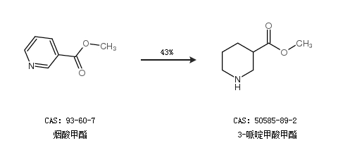 1.通过烟酸甲酯合成3-哌啶甲酸甲酯,收率约43%;