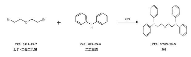 1.通过2,2''-二溴二乙醚和二苯基膦合成POP,收率约43%;