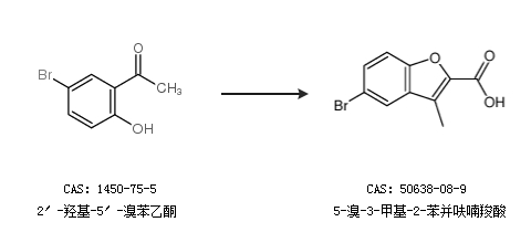 1.通过2′-羟基-5′-溴苯乙酮合成5-溴-3-甲基-2-苯并呋喃羧酸