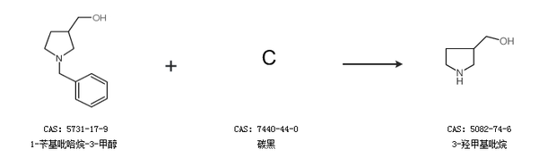 2.通过1-苄基吡咯烷-3-甲醇和碳黑合成3-羟甲基吡烷