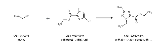 1.通过溴乙烷和3-甲基吡唑-5-甲酸乙酯合成3-甲基-1-乙基-1H-吡唑-5-甲酸乙酯