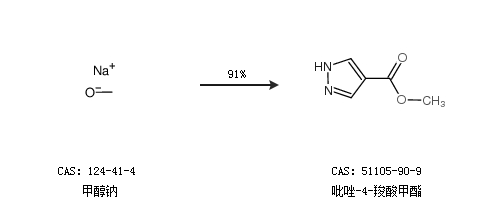 2.通过甲醇钠合成吡唑-4-羧酸甲酯,收率约91%;