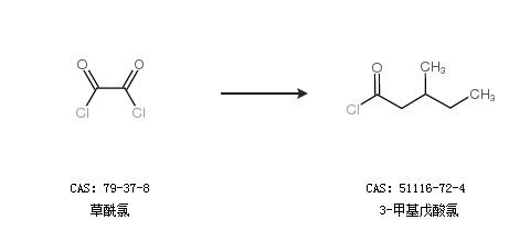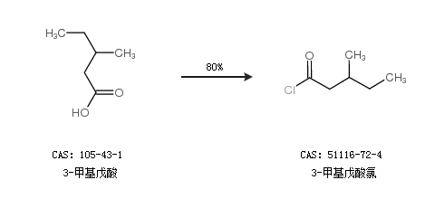 1.通过3-甲基戊酸合成3-甲基戊酸氯,收率约80%;