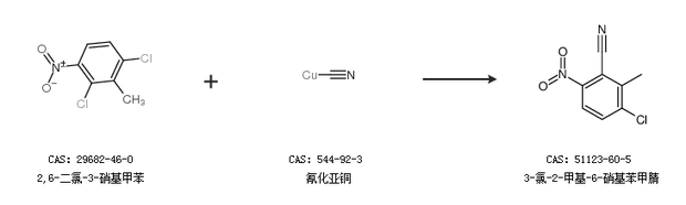 1.通过2,6-二氯-3-硝基甲苯合成3-氯-2-甲基-6-硝基苯甲腈