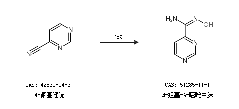 1.通过4-氰基嘧啶合成N-羟基-4-嘧啶甲脒,收率约75%;