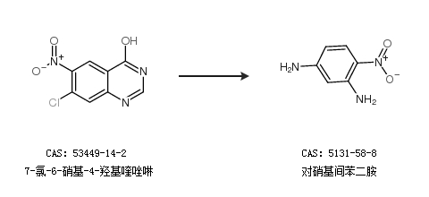 1.通过7-氯-6-硝基-4-羟基喹唑啉合成对硝基间苯二胺