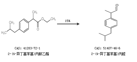 2.通过2-(4-异丁基苯基)丙酸乙酯合成2-(4-异丁基苯基)丙醛,收率约15%;
