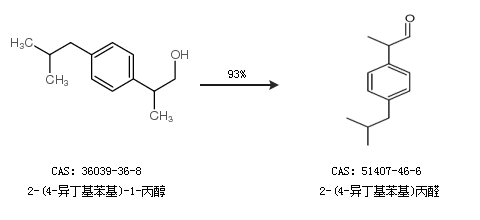 1.通过2-(4-异丁基苯基)-1-丙醇合成2-(4-异丁基苯基)丙醛,收率约93%;