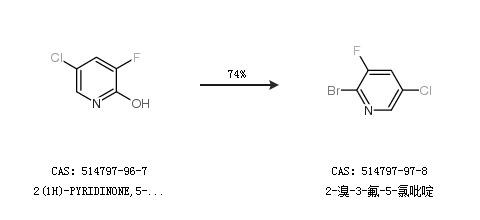 1.通过2(1H)-PYRIDINONE,5-CHLORO-3-FLUORO-(9CI)合成2-溴-3-氟-5-氯吡啶,收率约74%;