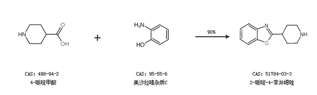 1.通过4-哌啶甲酸和美沙拉嗪杂质C合成2-哌啶-4-苯并噁唑,收率约90%;