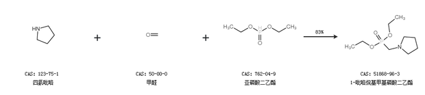 1.通过四氢吡咯、甲醛和亚磷酸二乙酯合成1-吡咯烷基甲基磷酸二乙酯,收率约83%;