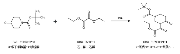1.通过N-叔丁氧羰基-4-哌啶酮和乙二酸二乙酯合成2-氧代-2-(1-Boc-4-氧代-3-哌啶)乙酸乙酯,收率约73%;