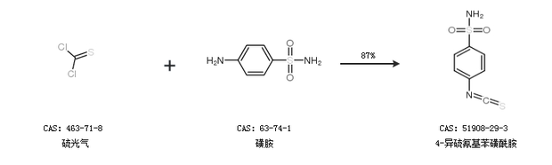1.通过硫光气和磺胺合成4-异硫氰基苯磺酰胺,收率约87%;
