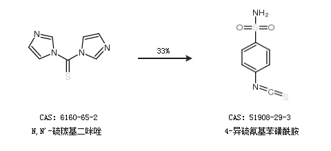 2.通过N,N''-硫羰基二咪唑合成4-异硫氰基苯磺酰胺,收率约33%;