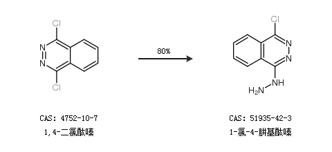 1.通过1,4-二氯酞嗪合成1-氯-4-肼基酞嗪,收率约80%;