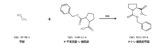1.通过甲醇和N-苄氧羰基-L-脯氨酸合成N-Z-L-脯氨酸甲酯,收率约99%;