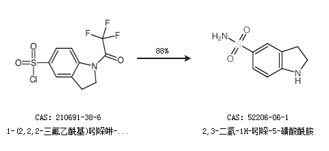 1.通过1-(2,2,2-三氟乙酰基)吲哚啉-5-磺酰氯合成2,3-二氢-1H-吲哚-5-磺酸酰胺,收率约88%;