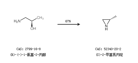 2.通过(R)-(-)-1-氨基-2-丙醇合成(S)-2-甲基氮丙啶,收率约67%;