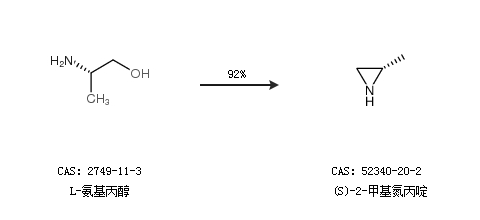 1.通过L-氨基丙醇合成(S)-2-甲基氮丙啶,收率约92%;