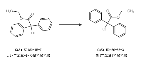 2.通过1,1-二苯基-1-羟基乙酸乙酯合成氯(二苯基)乙酸乙酯