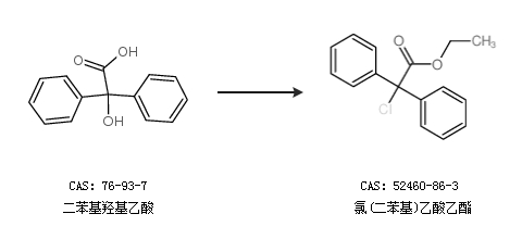 1.通过二苯基羟基乙酸合成氯(二苯基)乙酸乙酯