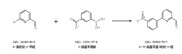 1.通过6-溴吡啶-2-甲醛和3-硝基苯硼酸合成6-(3-硝基苯基)吡啶-2-醛