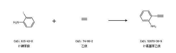 2.通过2-碘苯胺和乙炔合成2-氨基苯乙炔