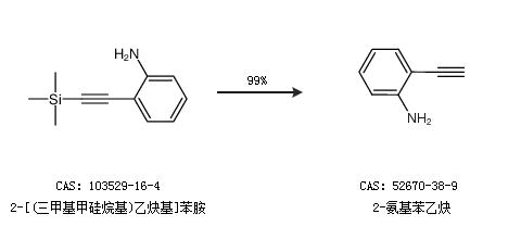 1.通过2-[(三甲基甲硅烷基)乙炔基]苯胺合成2-氨基苯乙炔,收率约99%;