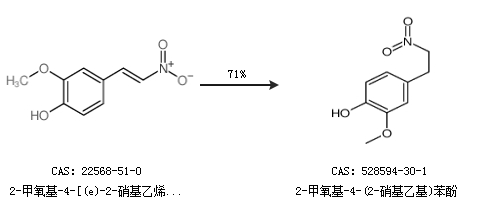 1.通过2-甲氧基-4-[(e)-2-硝基乙烯基]苯酚合成2-甲氧基-4-(2-硝基乙基)苯酚,收率约71%;