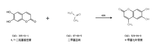 2.通过6,7-二羟基香豆素和二甲基亚砜合成4-甲基七叶苷原,收率约49%;