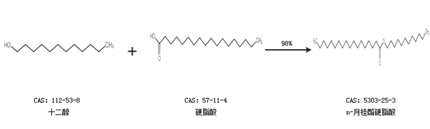 1.通过十二醇和硬脂酸合成n-月桂酯硬脂酸,收率约98%;
