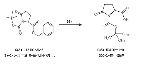 1.通过(S)-2-1-叔丁基 5-氧代吡咯烷-1,2-二羧酸苄酯合成BOC-L-焦谷氨酸,收率约96%;