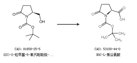2.通过(2S)-2-羟甲基-5-氧代吡咯烷-1-甲酸叔丁酯合成BOC-L-焦谷氨酸