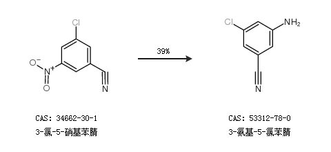 1.通过3-氯-5-硝基苯腈合成3-氨基-5-氯苯腈,收率约39%;