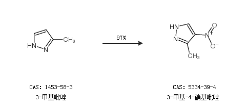 1.通过3-甲基吡唑合成3-甲基-4-硝基吡唑,收率约97%;